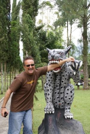 Gestern haben wir dort, wo wir unseren Roller gemietet haben, angefragt ob sie auch einen Fahrdienst nach Lovina (ganz im Norden der Insel) anbieten. Klar, machen die das. Ich glaube sie würden einen bis nach Australien fahren wenn da nicht Wasser zwischen wäre..*grins*. Die Strecke bis nach Lovina sind zwar "nur" 90 Kilometer, aber auf Bali ist das nicht mal schnell in 1 Stunde geschafft. Hier sind die Rollerfahrer schneller als die Autos. Das bedeutet das man durchschnittlich nur mit 50 km/h vorwärts kommt. Wir starten um 9:00 Uhr. Mietwagen ? Ein absolutes NO GO !! Wir hatten das ja eigentlich vor gehabt, aber schon auf der Strecke von Kuta nach Ubud ist uns klar geworden "Das tun wir uns NICHT an !!!" Und preiswerter wäre es auch nicht geworden. Wir raten jedem davon ab einen Mietwagen zu nehmen und selbst zu fahren. Denn der Tourist ist hier immer der Arsch und wird zur Kasse gebeten ! Außerdem ist es so wuselig auf den, oft mit Schlaglöcher zerstörten, schmalen, kurvigen Straßen, das es so viel Konzentration braucht um nicht jemanden an/um oder was abzufahren. Als Fahrer sieht man zwangsläufig dann gar nix von der Landschaft und als Beifahrer treibt es einen den Angstschweiß auf die Stirn. Da wir zwischendurch auch noch ein paar
