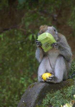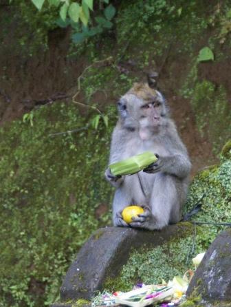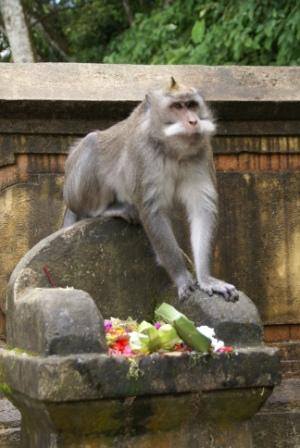 Auf der Weiterfahrt stoppen wir bei ein paar Affen die erstmal die Opfergaben plündern....