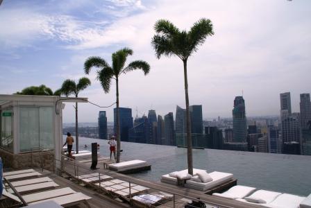 Hier der Blick auf die Skyline... ... und zum Pool