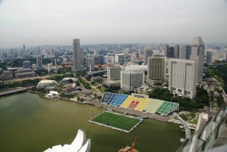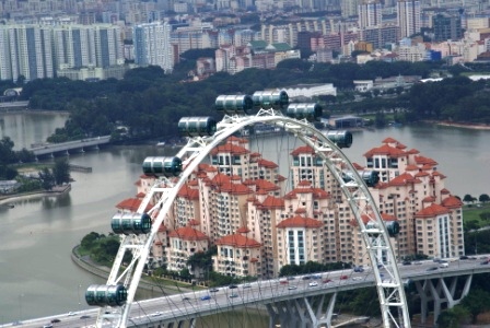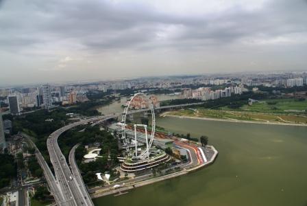Der Ausblick ist aber fantastisch und lässt den riesigen Singapore Flyer winzig erscheinen. In die Kabinen passen um die 30 Personen und man kann sie auch zu einem Dinner mieten.