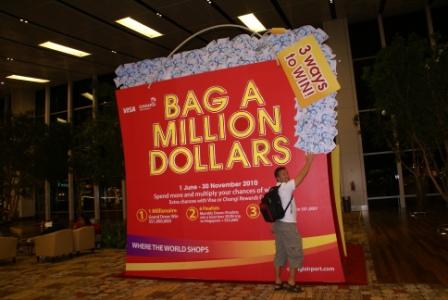Der Sitzplatzabstand und der Service sind für die Bretterklasse mehr als gut. Wir haben Glück und konnten einen Platz am Notausgang ergattern. Aber auch alle anderen Plätze haben sehr guten Sitzabstand. Neben uns sitzt Sebastian, ein Dortmunder, der vor 3 Jahren nach Sydney ausgewandert ist und auf Bali Urlaub gemacht hat. Wir haben viel Spaß mit ihm und bieten ihn an mit uns den Tag in Singapore zu verbringen bevor sich unsere Wege wieder trennen. In Singapore angekommen bringen wir erstmal unser Handgepäck an den "LEFT BAGGAGE Schalter". Den gibt hier es in jedem Terminal. Für umgerechnet 3 SIG$ (ca. 1,50 € / Stück) lassen wir unser Handgepäck dort und gehen nur noch mit Kamera , Pässen und der Karte der Freiheit (Kreditkarte) zur Immigration. Dort ist nix los. 1 Minute und wir sind durch. Nun geht es zum Taxistand. Die rechtlichen tausende Rupiah aus Bali tauschen wir auf dem Weg dorthin noch schnell um in Singapore-Dollar um.