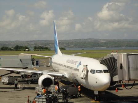 Schnell wech... Wir fliegen mit Garuda Indonesia nach Singapore. De Flug dauert ca. 2 Stunden. Wir hatten den Flug mit einer KLM-Flugnummer gebucht, bekommen nun aber Garuda-Bordkarten. Das wird noch ein Spaß nachher die Meilen beim KLM-Meilenprogramm einzufordern...