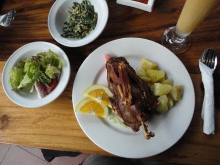 den Crispy Duck. Er ist lecker, aber so richtig satt werden wir davon leider