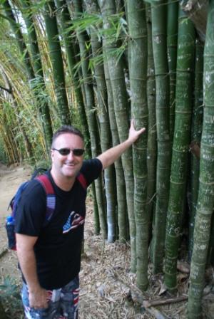 in 30 Minuten schweißtreibend einen Trampelpfad über den Berg wandert.