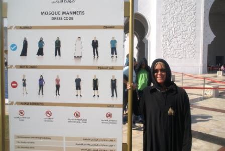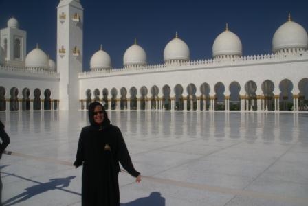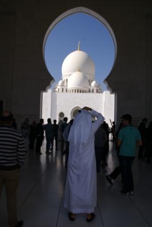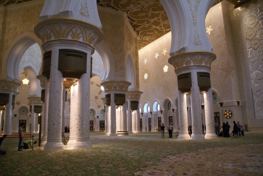 Voll gefuttert steigen wir in unseren Japan-Ferrari und los geht es die 80 km nach Abu Dhabi zur "Grand Moschee". Das ist das Wahrzeichen von Abu Dhabi und schon von weitem zu erkennen. Wir sind ja nicht so die Kulturbanausen, aber dieses Bauwerk ist schon echt beeindruckend.