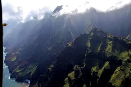 Leider ist mir mein Polfilter beim drehen aus dem Heli gefallen, aber die Bilder sind trotzdem Klasse geworden ! Das ist der Nachteil wenn man ohne Türen fliegt. Aber ein rieeeesen Vorteil ist das man keine Spiegelung hat und hautnah den Wind spürt. Ein unvergesslicher Flug. Natürlich fliegt sie auch die "Napali Coast" entlang. Eine einzigartige Landschaft !!! Wir sind erschlagen von der Schönheit und man vergisst einfach zu überlegen wie man diese Landschaft aufs Foto bekommt. Das passiert mir selten. Man genießt einfach nur und lässt die Kamera auf dem Schoß liegen. Deshalb hier im nachhinein leider nur ein paar Eindrücke die diesen Küstenabschnitt beiweiten nicht so toll darstellen wie er eigentlich ist.