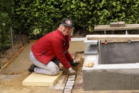 13.06.2009 Heute früh um 10:00 Uhr kommt Mr. Love pünktlich und ausgeschlafen (???) ,nach 3 Stunden Schlaf, zum Frühstück zu uns. Danach haben wir drei uns an den Rest der Pflasterarbeiten gemacht. Wir haben Mitte Juni und ich sitze heute mit dicker Winterjacke hier weil es saukalt ist... brrr..., unglaublich !!! Ist noch kein Poolwetter...