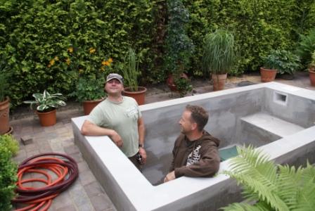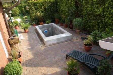 Jetzt haben wir knapp 2 Wochen Zwangspause bis wir die Innenabdichtung und die Farbe aufbringen können. Denn der Beton des Bauwerkes sollte gesamt 4-6 Wochen aushärten bevor man mit der Innenbeschichtung beginnt.