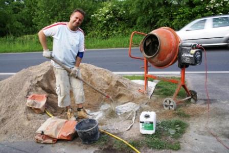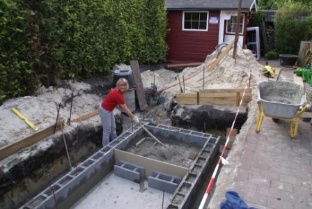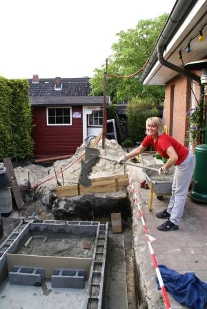 Da wir praktischerweise an der Straße beim Kieshaufen den Zementmischer aufgestellt haben kommen paar Rentner vorbei und fragen neugierig was wir denn da eigentlich machen. Tja, wir bauen einen nicht gerade altengerechten Pool wie gestern mein Daddy schon bemerkte. Es fehlt der Anschnallgurt damit man, wenn man auf der (noch nicht gebauten)Treppe sitzt nicht womöglich einschläft, ins Becken sinkt und "absäuft"... ohje, vielleicht sollten wir noch Schwimmwesten anlegen besorgen. Die haben Sorgen...ich hab´ dann lieber