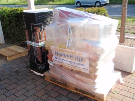 18.05.2009 Nach diversen Besuchen und Telefonaten bei unserem Baustoffhändler des Vertrauens, was wir für die Außenabdichtung benötigen, wird heute der ganze Kram angeliefert: