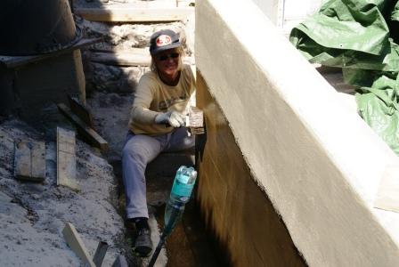 zwischenzeitlich seine frisch verputzte Kante feucht damit sie durch die Sonne