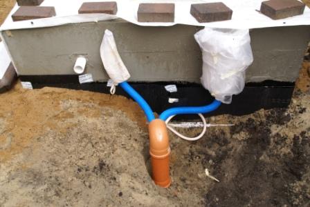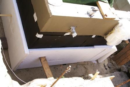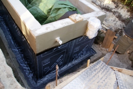 Perimeter-Dämmplatten in 5 cm Stärke im Grundwasserbereich befestigt und den