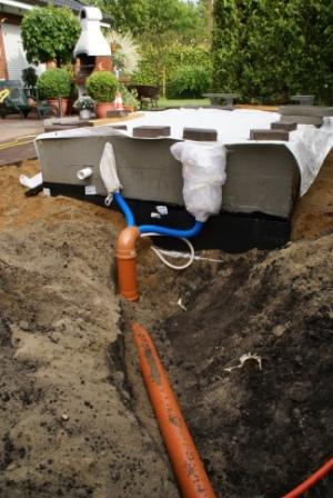 Frostgrenze die 4 m bis ins Gartenhaus gelegt, wo später die Sandfilteranlage