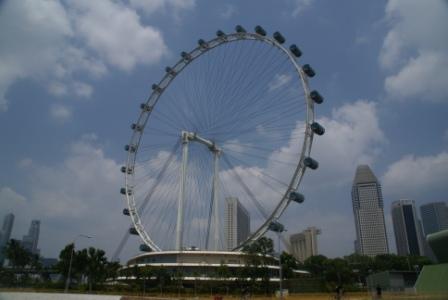 SINGAPORE (Sightseeing) Um 8 Uhr sind wir wieder wach. Trotz 4 Stunden 2Schlaf sind wir echt fit. Hatten ja im Flieger auch schon fast 5 Stunden geschlafen. Wir checken erstmal unseren Ausblick. Nett. Das Hotel liegt direkt am "Clark Quay". Gegenüber gibt es diverse Restaurants. Wir frühstücken erstmal ausgiebig. Das Buffet ist supi. Es gibt echt alles. Danach gehen wir gegenüber zur Bahnstation. Sie ist recht einfach sich zurecht zu finden. Die Strecken kosten immer so 2,40 SIND$. Davon bekommt man immer bei Rückgabe der Fahrkarte 1 SING$ zurück. Da heute ein Marathon ist, und sie die Straßen um den "Singapore Flyer" abgesperrt haben, ist dort kein Schwein. Wir besorgen uns vom restlichen Bargeld 2 Karten da unsere Kreditkarte mal wieder nicht funzt. Nachher müssen wir eben einen Geldautomaten aufsuchen.