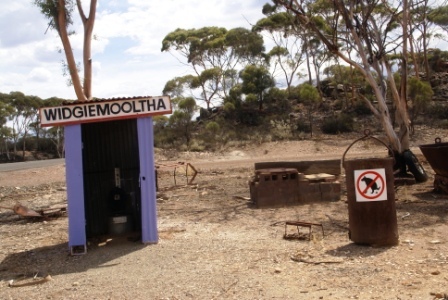 Widgiemooltha (kurz"Widgie" genannt) und einem Roadhouse mit einer Nachbildung