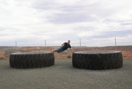 Nach ein paar Runden im Pool (dort gibt es übrigens auch wieder einen BBQ-Platz) düsen wir noch mal zur größten Goldmine der Region. Das sind nur 10 Minuten mit dem Auto. Beim "SUPERPIT - LOOKOUT" hat man einen tollen Blick in die riesige Mine die über 3 km lang sein soll. Echt beeindruckend !!