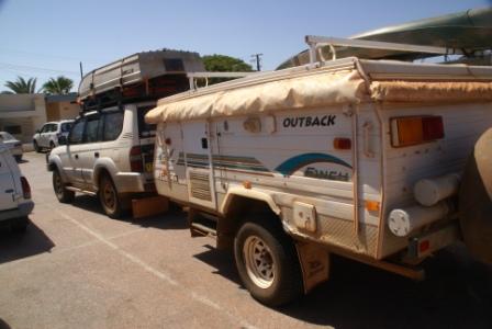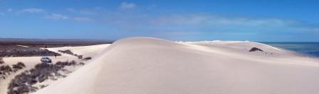 Witzig und auch Sprit sparend sind die Wohnwagen wo man das Dach auffalten kann. Es gibt viele Möglichkeiten an diverse Strandabschnitte im "Cape Range N.P." zu kommen. wir stoppen erstmal bei der großen Düne.