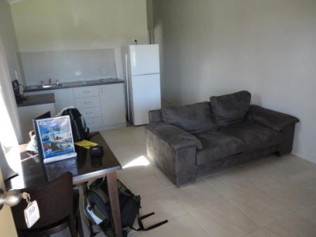 Das ganze nennt sich mit einem riesigen Schild "Shopping Center" !!! Wir buchen uns für 2 Nächte ins "Bayview" ein. Für eine nagelneue Villa zahlen wir stolze 180 AUS$ (~ 112 €), haben aber auch Wohnküche und ein separates Schlafzimmer und können gut selbst kochen.