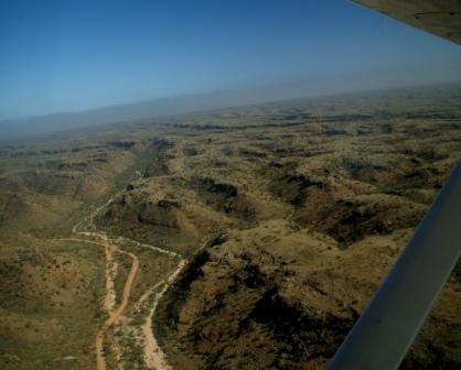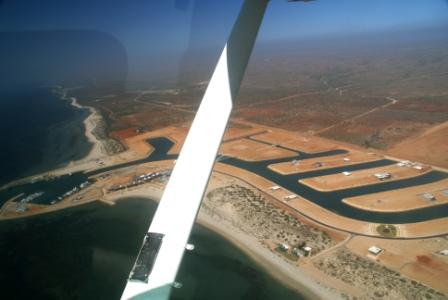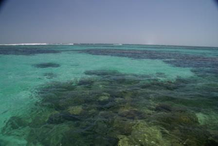 Die Sicht über den Canyon im "Cape Range N.P." ist noch gut, aber leider ist eine dicke Nebelwand über dem Meer zu sehen, shit. Dementsprechend sind die Riff-Bilder leider recht farblos, schade. Wir überfliegen nun auch die "Turquoise