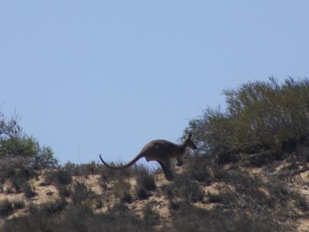 Nachts fahren wir die 17 km zurück im mit nur 20 km/h. Überall am Wegesrand "lauern" Kangaroos die wir natürlich leben lassen wollen.