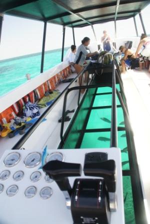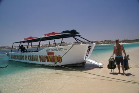 Da es noch früh ist und wir nicht den ganzen Tag am Strand abhängen wollen buchen wir uns für 12:15 Uhr einen Kombi-Trip (Glasbodenboot mit Schnorcheleinlagen). Kostet für 2 Std. 45 AUS$. Es gibt auch Trips die länger gehen. Aber uns reicht das. Der Strand ist hier so toll, den wollen wir auch noch genießen. Bevor es los geht driven wir noch mal