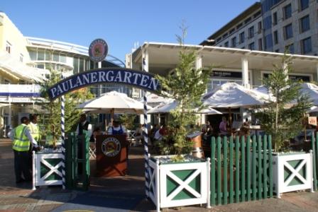 Witzig waren die Decken im Tierfell-Style im City Grill, wo wir zum Essen einkehren. Allerdings ist die DEKO und der Blick besser als das Essen. Auch einen Paulaner Biergarten gibt es hier wo aber die Live-Musik sehr laut ist und man sich schlecht unterhalten kann. Leider gibt es noch kein Hard Rock Cafe in Kapstadt.