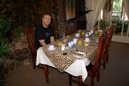 Tag 5: 18.02.2009 SABIE=> HOIDSPURIT (220 km) Heute früh bei Sonnenschein erstmal ab in den Pool und danach das gute Frühstück in der Lodge genossen mit allem was das Herz begehrt. Der Frühstücksraum ist toll eingerichtet im Leopardenstyle und auch der Aufenthaltsraum (für kältere Tage) ist fantastisch. Hier kann man es sich auch bei schlechtem Wetter richtig gut gehen lassen.