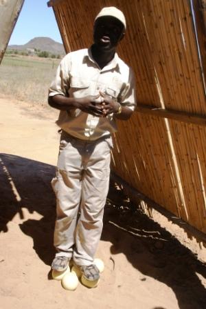 Also los. Norbert ist als erster dran. Irgendwie sehen die Vögel nicht so richtig reitbar aus. Der Guide erklärte wie man es macht, aber zwischen Theorie und Praxis liegen Welten ... aber lustig war es allemal !