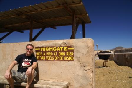 Danach geht es auf den Highway zur ca. 15 Minuten entfernten "Highgate" Ostrichfarm. Sie ist die älteste, und größte der Welt. Hier in Oudtshoorn gibt es noch mehrere Farmen. Für 60 ZAR (~ 5 €) p.Pers. bekommt man eine super Führung. Es ist mal wieder nichts los (wie bisher fast überall). Wir sind nur 6 Leute und der Führer. Die Touren beginnen stündlich.