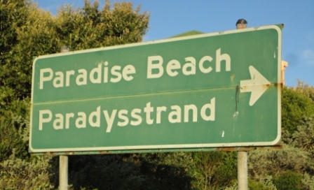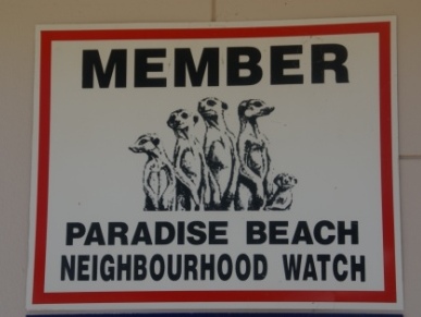 Wir fahren weiter zu unser nächsten Unterkunft in der Nähe vom Jeffreys Bay. Das "Moja Manzi Beach House" liegt am wundervollen Paradise Beach. Hier waren wir schon 2009 und nun besuchen wir die beiden Holländer Jaap und Mia wieder. Sie sind sehr erfreut das wir diesmal 2 Nächte bleiben werden und geben uns gleich einen tollen Restauranttipp für den Abend. Witzig das Schild von ihrem neuen Sicherheitsdienst.