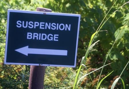 Dann geht es weiter zur "Suspension-Bridge". Der 77 Meter langen Hängebrücke, die man auf einem ca. 20 minütigen Fußmarsch über Treppen erreicht. Am Ausgangspunkt stehen etliche Reisebusse und versperren den entgegenkommenden Fahrzeugen den Weg. Aha, hier werden sie also abgeladen. In den Reiseführer wird sie als beliebtes Fotomotiv angepriesen. Na, wir schauen mal...