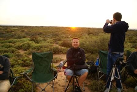 kurz vor 5. Da wir uns um 5:30 Uhr mit dem Meerkat-Man "Devey" am dunklen