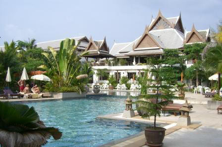 05.03.2008 KHAO LAK Nach einem guten Frühstück nahmen wanderten wir am Strand entlang bis zum "Mukdara" Resort. Die Hotelanlage ist sehr, sehr groß und gepflegt. Überall sind ganz viele tolle Blumen. Der Pool direkt am Strand ist klein und die Liegen stehen dort dicht gedrängt. Das hat uns nicht gefallen. Aber innen die Poolanlage war der Wahnsinn !!! Wir gingen natürlich fremd baden. Viel los war am Pool nicht. Man konnte da gut relaxen. Hier mal ein paar Fotos.