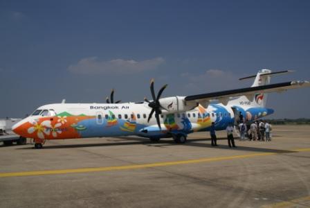 29.02.2008 KOH CHANG => PHUKET Gestern Abend buchten wir uns noch einen privaten Taxitransfer der uns zum U-Tapao International Airport (30 km vor Pattaya) bringen sollte. Wir zahlten dafür 3.100 THB (ca. 60 €). Die Fahrt dauerte auch gut 3 Stunden vom Festland aus. Die Überfahrtszeit der Fähre von Koh Chang muss man noch mit ca. 1/2 Stunde dazurechnen. Wir nahmen die 1. Autofähre am Morgen um den Flieger um 12:40 h nach Phuket mit Bangkok Airways zu erwischen. Leider gibt es bisher vom Flughafen TRAT keine Verbindung nach Phuket. Somit mussten wir leider diesen Weg nehmen. Der Airport ist eigentlich ein Militärflughafen von dem Bangkok Airways aber auch starten darf.