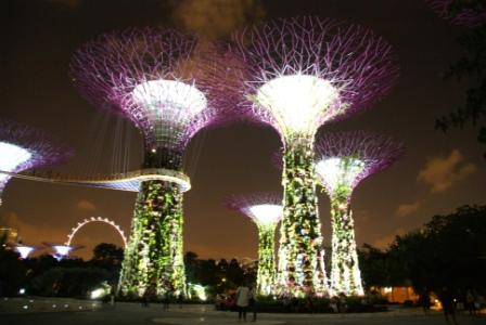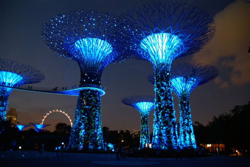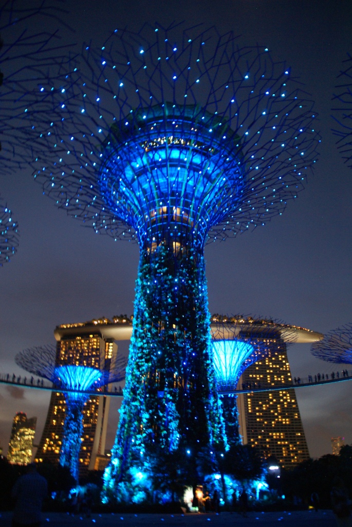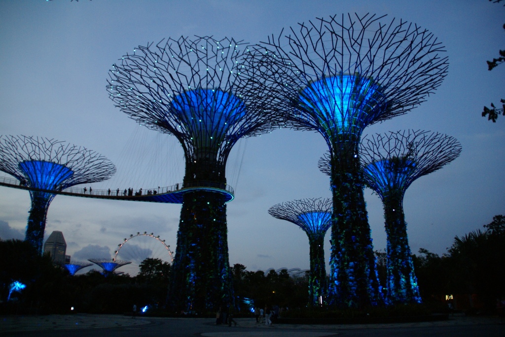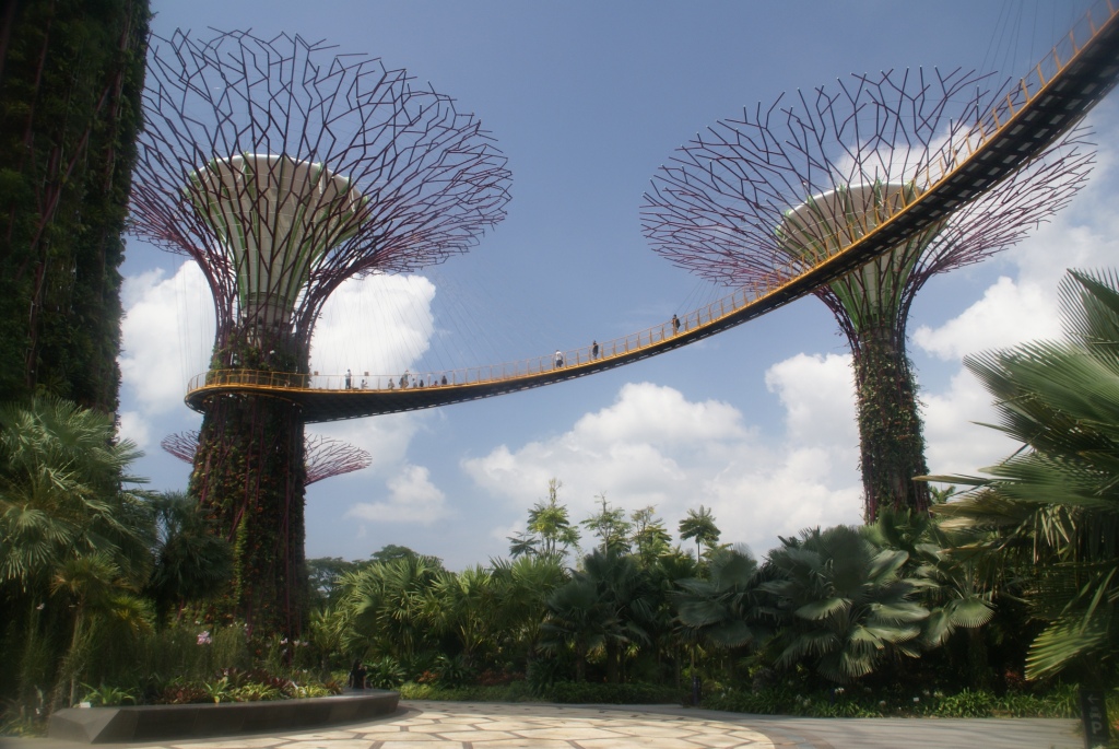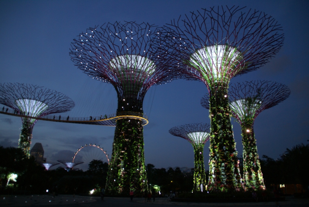 Die Super Trees sind pflanzenbewachsene Stahlgerüste mit Höhen zwischen 25 und 50 Metern. Sie dienen unter anderem der Aufzucht von seltenen Pflanzen. Ferner wird mittels Photovoltaik Elektrizität für Beleuchtung und Kühlsysteme gewonnen, werden die Niederschläge zur Bewässerung der Pflanzen gesammelt und einige der Bäume dienen als Kühltürme für die Kühlsysteme in den Glashäusern. Zwei der Türme werden in luftiger Höhe mit einem Skyway verbunden, den die Singapurische Oversea China Banking Corporation (OCBC) finanziert hat. Nachts werden die Türme beleuchtet und es finden Licht- und Tonshows statt, die die Bank sponsert.[2] (Auszug aus Wikipedia) Es bleibt einem echt die Luft weg so unglaublich geil ist das hier !!! Man fühlt sich wirklich wie auf einem anderen Planeten. Der Eintritt in diesen Bereich ist sogar frei.