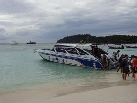 Die Überfahrt um 10:30 h mit dem Speedboot von "Bundhaya" ist 3 unendliche Stunden lang. Es