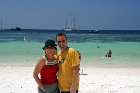 Das ist also der schönste Strand der Insel am Tage. Der Sand ist schneeweiß und es gibt kaum Schatten. Das Wasser ist flach und man muss schon etwas raus um schwimmen zu können. Wir konnten es aber auch nicht lassen uns etwas Sand als Erinnerung mitzumehmen.