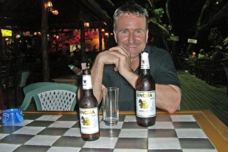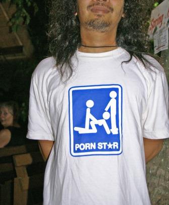 Es ist super lauschig hier und wir bleiben den ganzen Abend und trinken noch ein paar Singha Bierchen. Am besten war aber unsere Bedienung... solche T-Shirts mit witzigen Bildern und Sprüchen gibt es in Bangkok jede Menge. Kosten nur 99 THB und sind immer einen Lacher wert. Norbert hat davon auch ne Menge im Schrank ;-))
