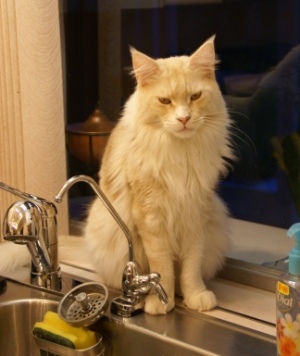Lauderdale mit seiner Frau und seinen beiden riesigen Main Cone Katzen