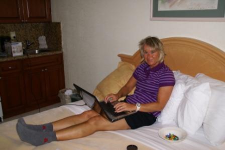 Da wir unser Laptop ja dabei haben konnten wir gestern schon online im RAMADA Hollywood Beach Resort vorreservieren. Da Wochenende ist haben wir das lieber gemacht. Die Mitgliedschaft bei www.wyndhamrewards.com sichert uns (bei Verfügbarkeit) ein upgrade auf ein besseres Zimmer und auf einen Late-Check out. Das wollen wir nutzen. Und es klappt ... wir bekommen Meerblick und ein Zimmer mit Küchenzeile, aber Spiegeleier braten werden wir hier sicher nicht ☺