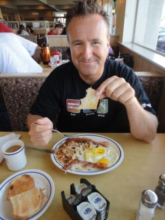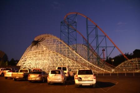 Aber zuerst muss der Magen was zu tun haben. Da sind wir bei IHOP gut aufgehoben. Sunnysides und  Hashbrowns mit Speck... lecker, lecker.  Einige essen aber auch schon um 9:30 Uhr Morgens ein fettes Steak mit Kartoffelmus am Nebentisch. Am Eingang erwartet uns eine Parkplatzgebühr von 15 $. Na, das hält sich ja noch im Rahmen. Hat sich seit 2006 nicht erhöht. Entweder man liebt oder hasst diesen Park. Es gibt wirklich fast nur Rollercoaster (18 Stück) und es wird auf jegliches Theming verzichtet. Da ist "Busch Gardens" eine Augenweide. Aber das interessiert die Leute hier nicht. Die Magischen Berge locken Coasterfans aus aller Welt an - zu Recht !