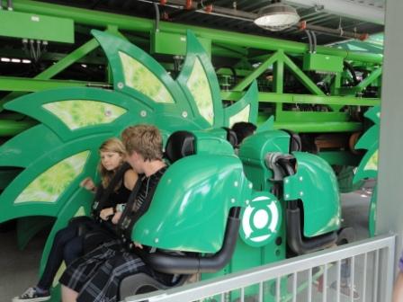 "Green Lantern" - dieses Jahr eröffnet, allerdings sowas von schlecht. Also wir würden uns nicht noch mal anstellen. Man sitzt vorwärts und rückwärts, was sich aber während der Fahrt durch Überschlag der Kapseln wahllos verändert... grauenhaft... !