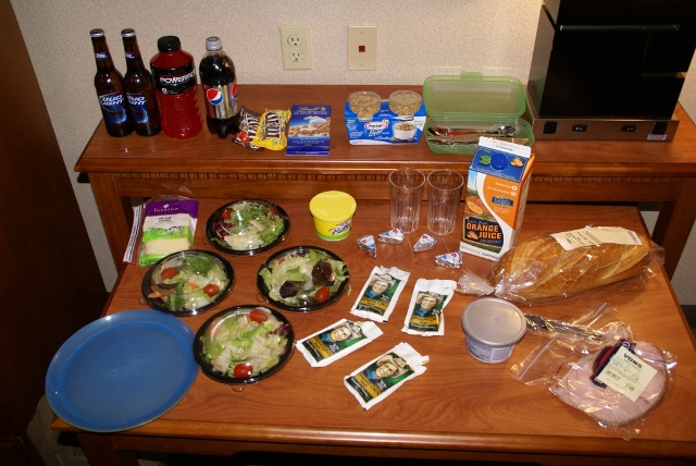 Nach so einem Tag wird nur noch im Motel gepicknickt. Es gibt 1 $-Salate vom den golden Bögen95.gif  (die sind übrigens sehr gut !) und frisches Brot und Schinken aus dem Supermarkt. Danach werden die Füße hochgelegt. Norbert macht mal wieder den Zapper im TV.. eigentlich zappt man nur von Werbung zu Werbung. Richtig was Anspruchsvolles findet man nicht.