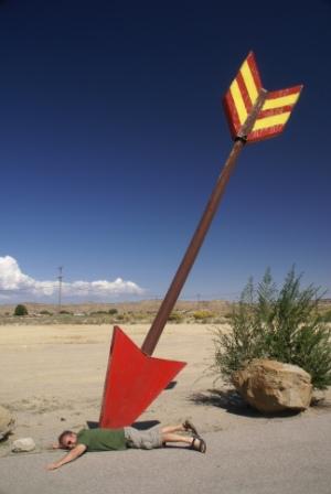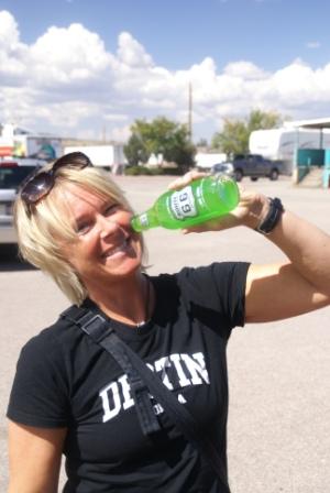 Bei Gallup stoppen wir an der "Navajo Travel Plaza". Die Route 66 liegt hier neben dem Interstate 40. Wie in vielen Orten an der Route 66 steht auch hier ein witziges Fotomotiv. Und in der Tankstelle gibt es Souvenirs und schrille 66-Getränke.