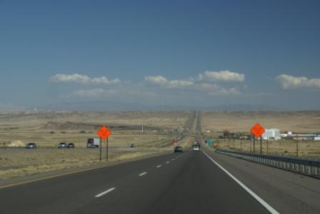 Heute geht zu unserem letzten Ziel. Wir passieren die Bundesstaatsgrenze nach New Mexico. Die 5 1/2 Stunden Fahrt, schnurgerade auf dem Interstate 40,   nur unterbrochen an zwei Foto-Tankstops an der Route 66.