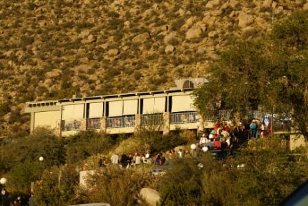 Nach einer Runde im Pool fahren wir zum "Sandia Peak". Dort an der Seilbahn ist richtig viel los. Wartezeit über 1,5 Stunden. Wir reihen uns erstmal ein und haben einen netten Plausch mit einem Rentner aus Albuquerque und seinem Kumpel aus Ohio. Die beiden sind auch weit gereist und wir reisen in den 1,5 Stunden einmal gedanklich um die ganze Welt.  Als sie uns zufällig nebenbei erzählen das die Ballons Abends NICHT beleuchtet aufsteigen drehen wir 5 Minuten vor Betreten der Gondel wieder um. Das Geld sparen wir uns und gehen lieber ne Pizza essen. Morgen müssen wir früh raus.