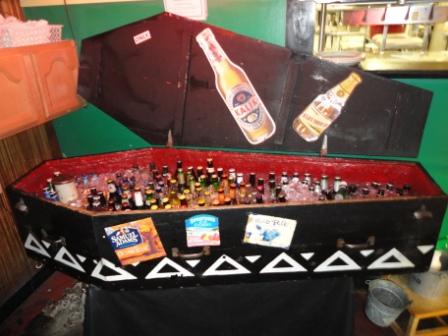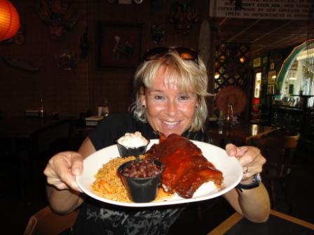 Aber der Magen ruft langsam nach Rippchen. Da fahren wir doch glatt mal zu "Mr. Bones". Letztes Mal hatte er leider Ruhetag. Aber nun sind wir bereit. Der Laden ist wirklich Kult und bietet zwischenzeitlich sogar schon ein paar Souvenirs an. Überall im Laden hängen Voodoo-Puppen und Masken. Es ist kein Kettenrestaurant. Am Wochenende muss man vorbestellen. Die Getränke werden in einem Sarg gekühlt.
