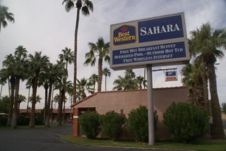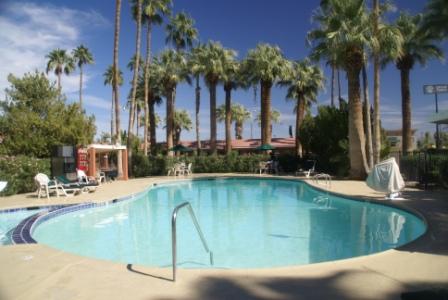 In Blyte angekommen sind schon 35 Grad und wir freuen uns auf einen großen Pool im Sahara-Motel.