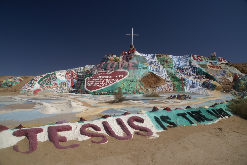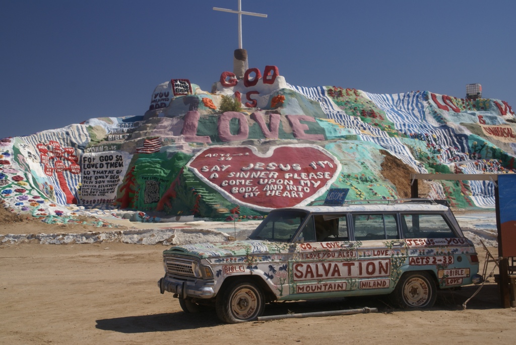 Mehr Infos über den verrückten Maler (Gläubigen) hier: http://de.wikipedia.org/wiki/Salvation_Mountain Der Eintritt ist kostenlos. Man kann was in eine Box spenden (für neue Farbe) oder direkt mit einem Farbtopf längs kommen.