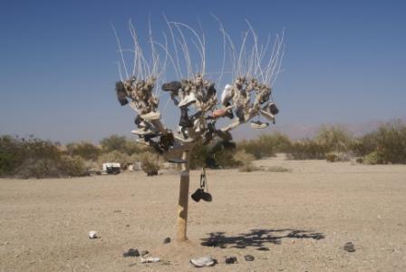 Hier hängen die Turnschuhe an den Bäumen...